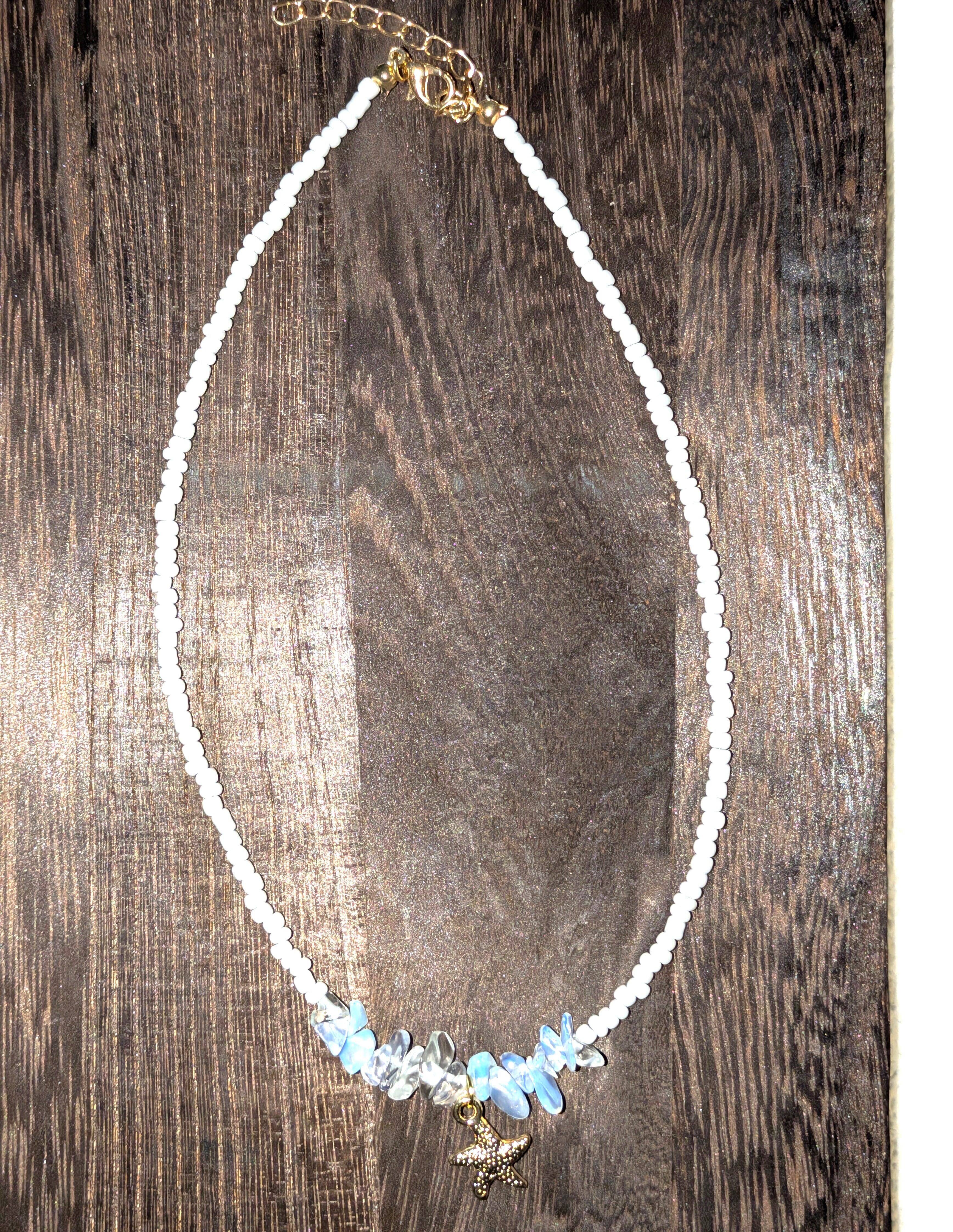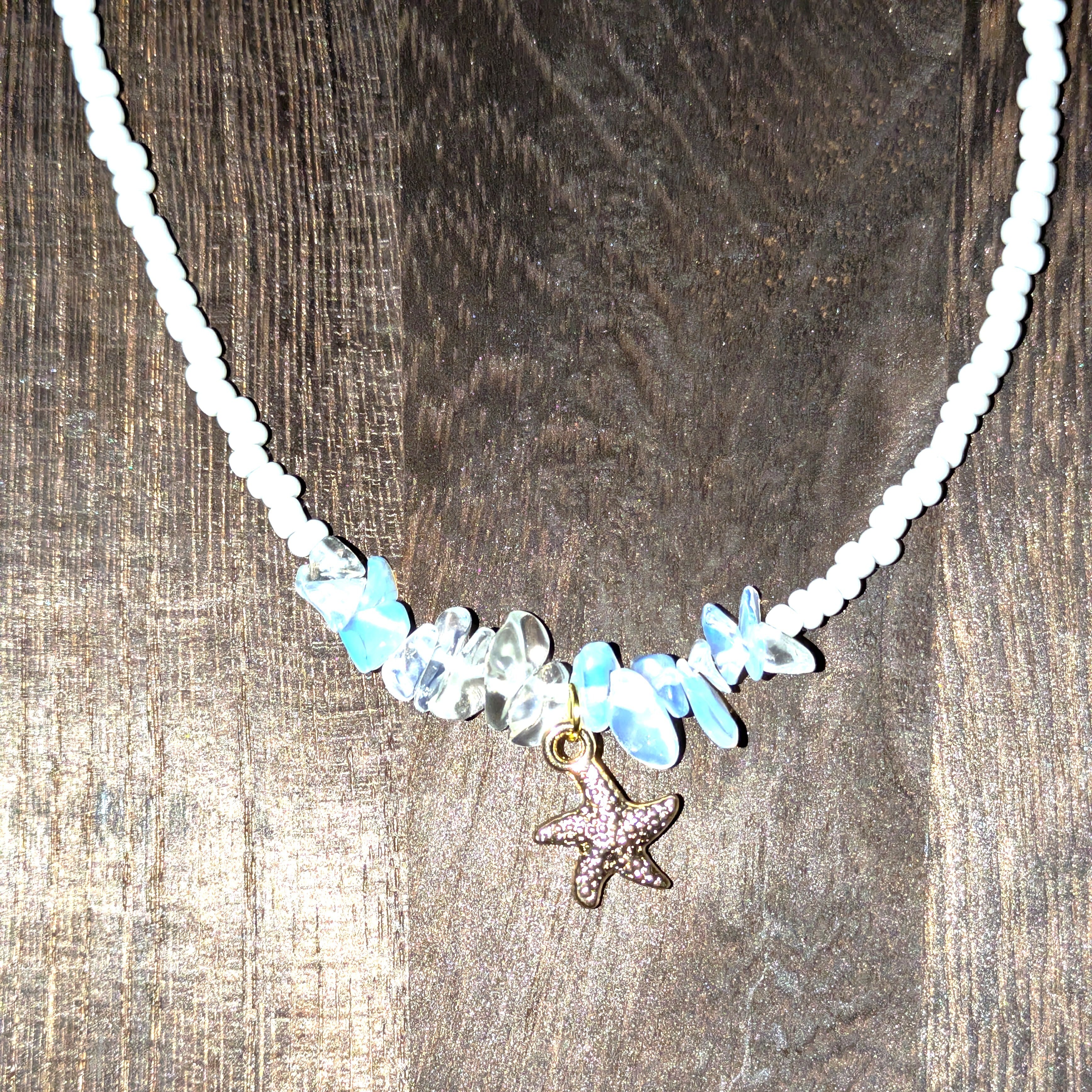 At the center, a cluster of randomly shaped clear parts sparkles softly, paired with a charming gold starfish—adding a touch of seaside inspiration.