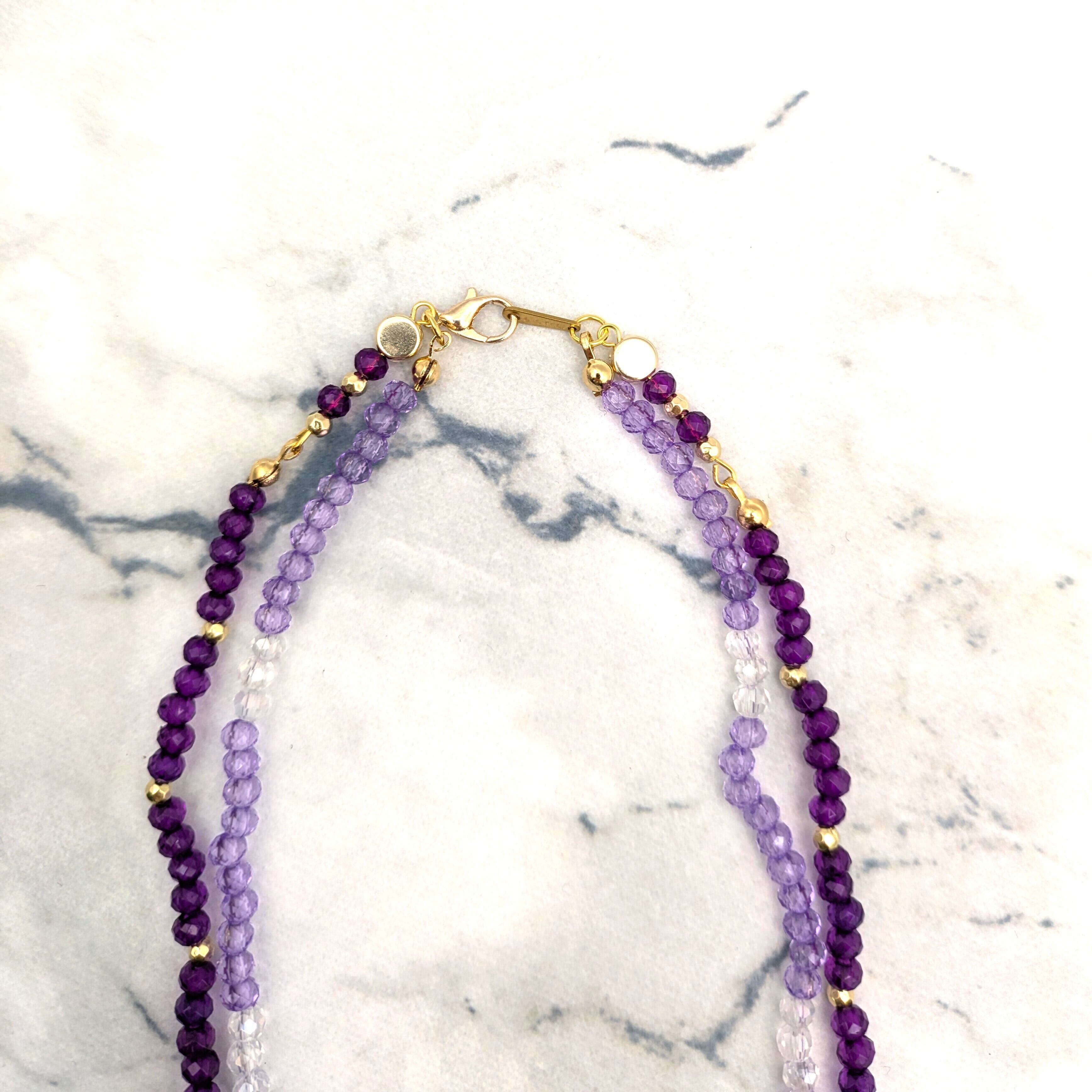 ラベンダーと濃いパープルの2色を組み合わせた、華やかな2連ビーズネックレスです。