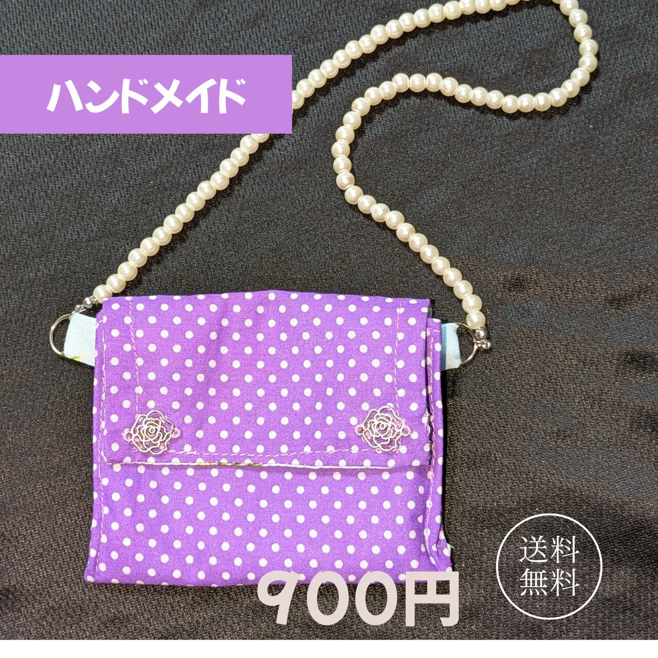 持ち手には約40cmのパール風ビーズを使用しており、アクセサリー感覚で楽しめるのもポイントです。