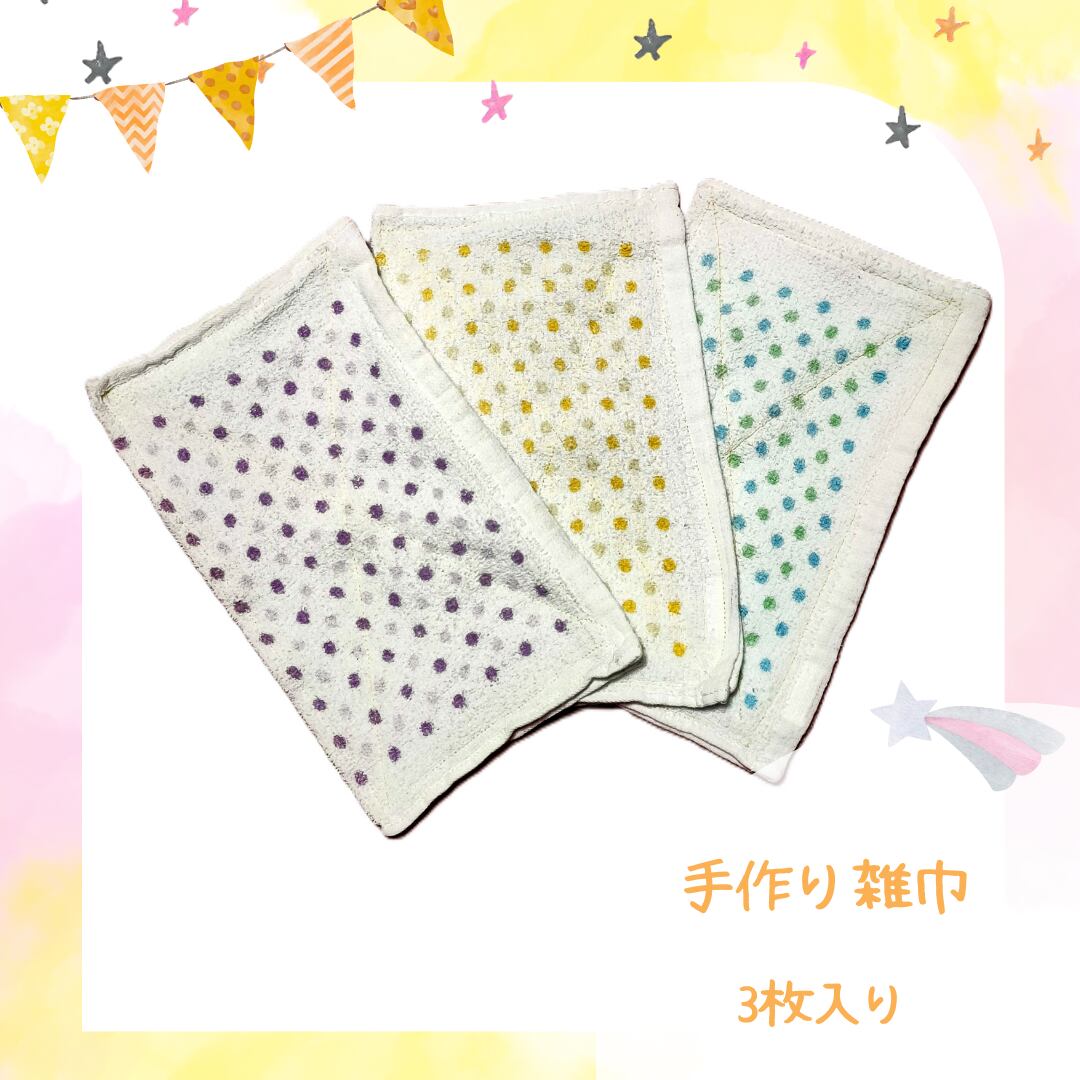 やさしい色合いのドット柄ハンドタオルを活用し、雑巾にリメイクしました。