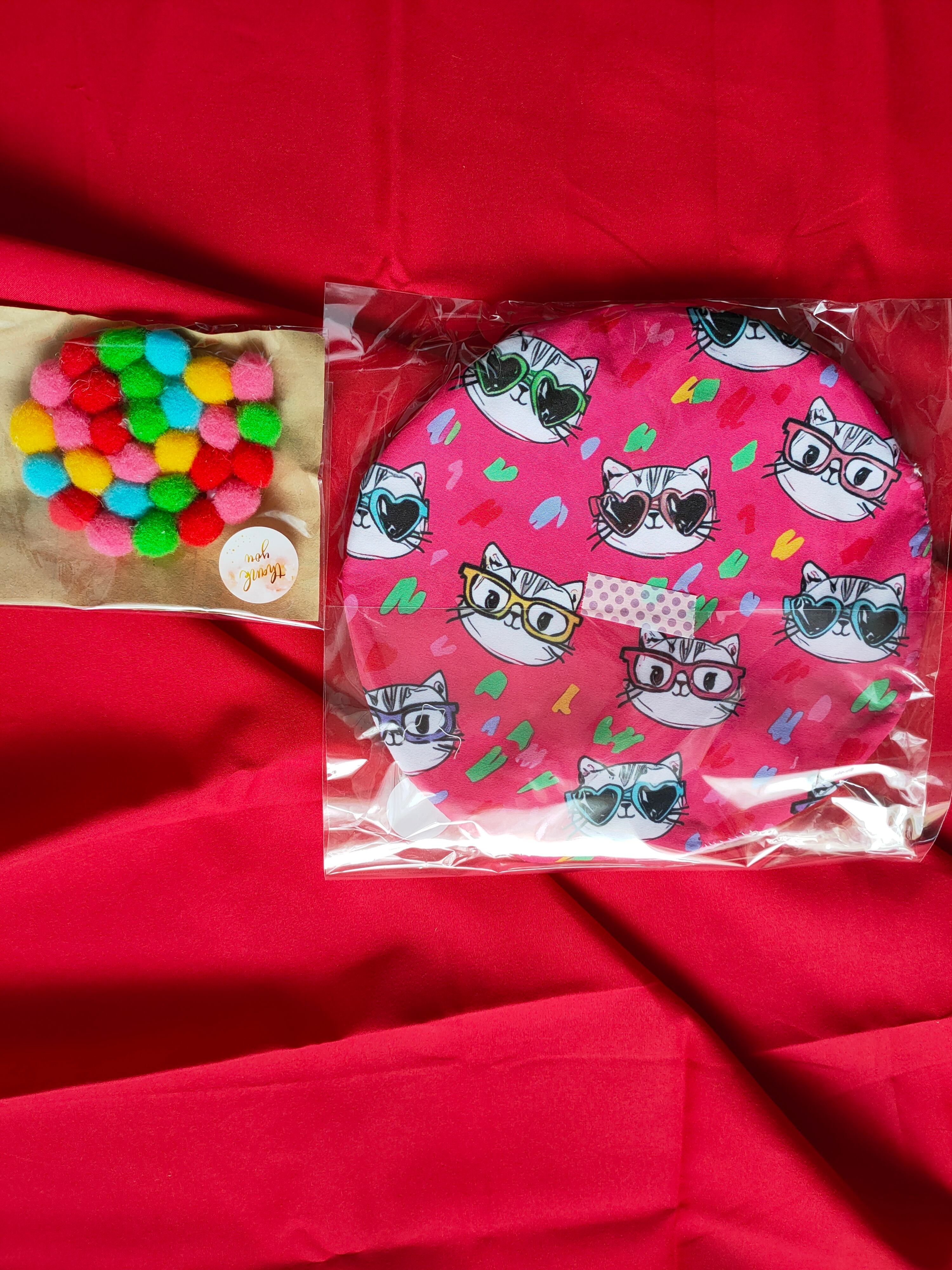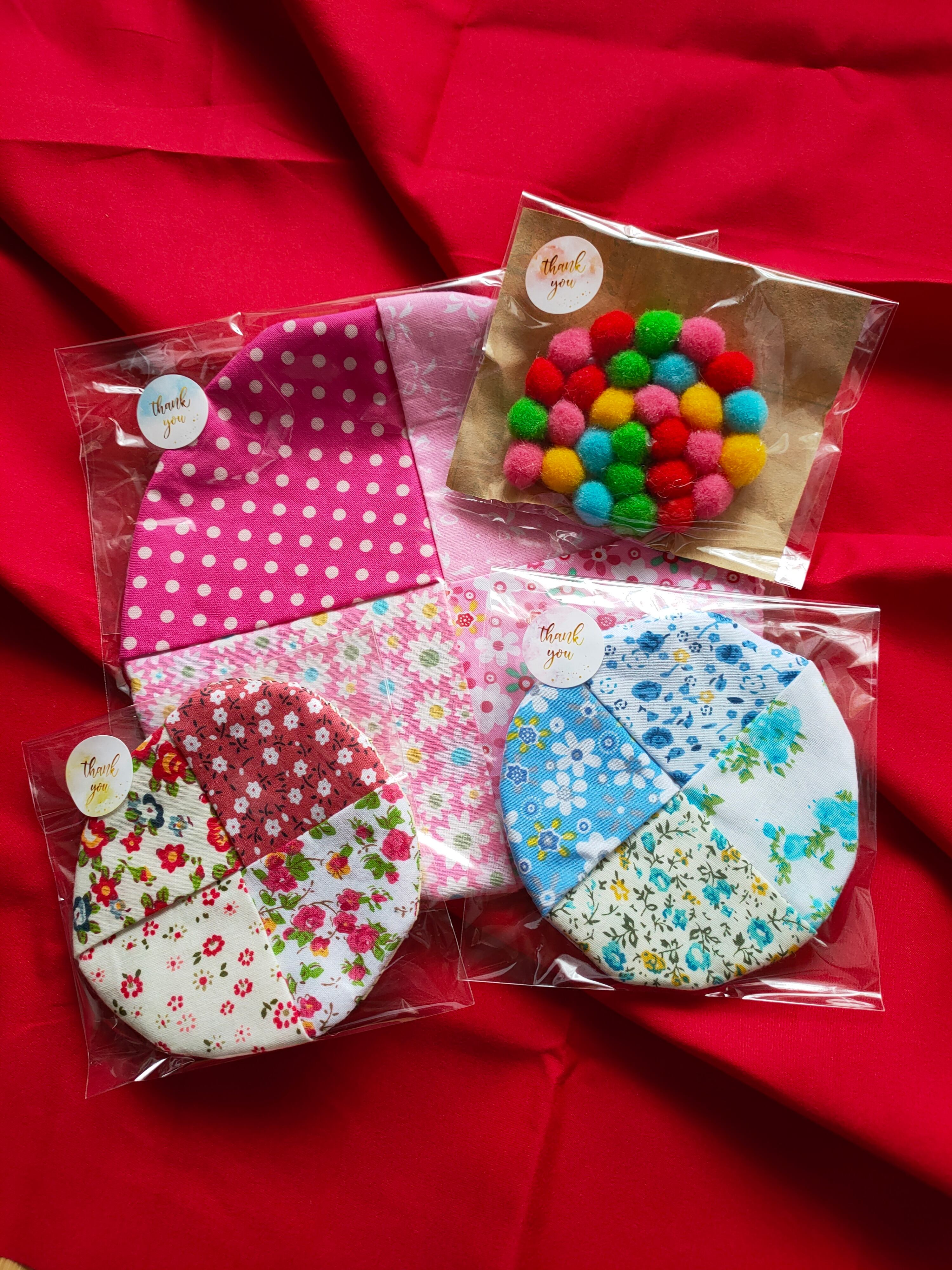 * 鍋敷き(1点): 直径約 20 cm。中くらいのサイズの鍋やケトルにちょうど良い、実用的なサイズです。熱いものからテーブルをしっかり守ります。* パッチワークコースター(2点): 直径約 11 cm。少し大きめのマグカップにも使いやすいサイズです。* ポンポンコースター(1点): 直径約 7 cm 〜 8 cm。遊び心あふれるデザインで、ティータイムの会話が弾みます。ご自宅用はもちろん、引っ越し祝いや、日頃の感謝を込めたプチギフトとしてもおすすめです。手作りの温かさで、毎日の暮らしを豊かにしませんか。