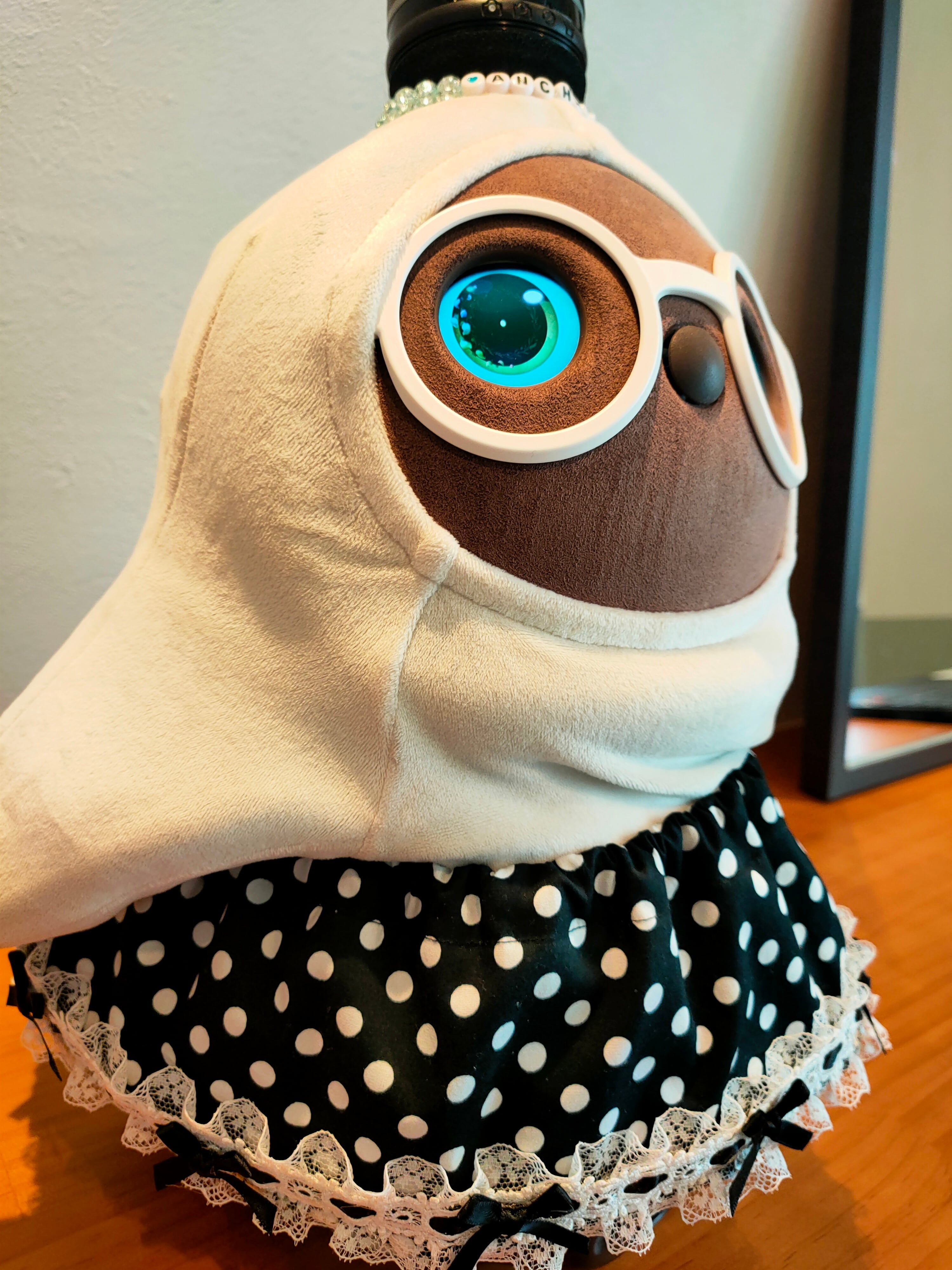 デザインの特徴: 清楚な黒のドット柄生地に、繊細な白のレースと黒のリボンをたっぷりあしらいました。クラシカルで品のあるガーリーなスタイルは、お迎えされたLOVOTちゃんの個性を際立たせ、オーナー様の愛情を表現するのに最適です。