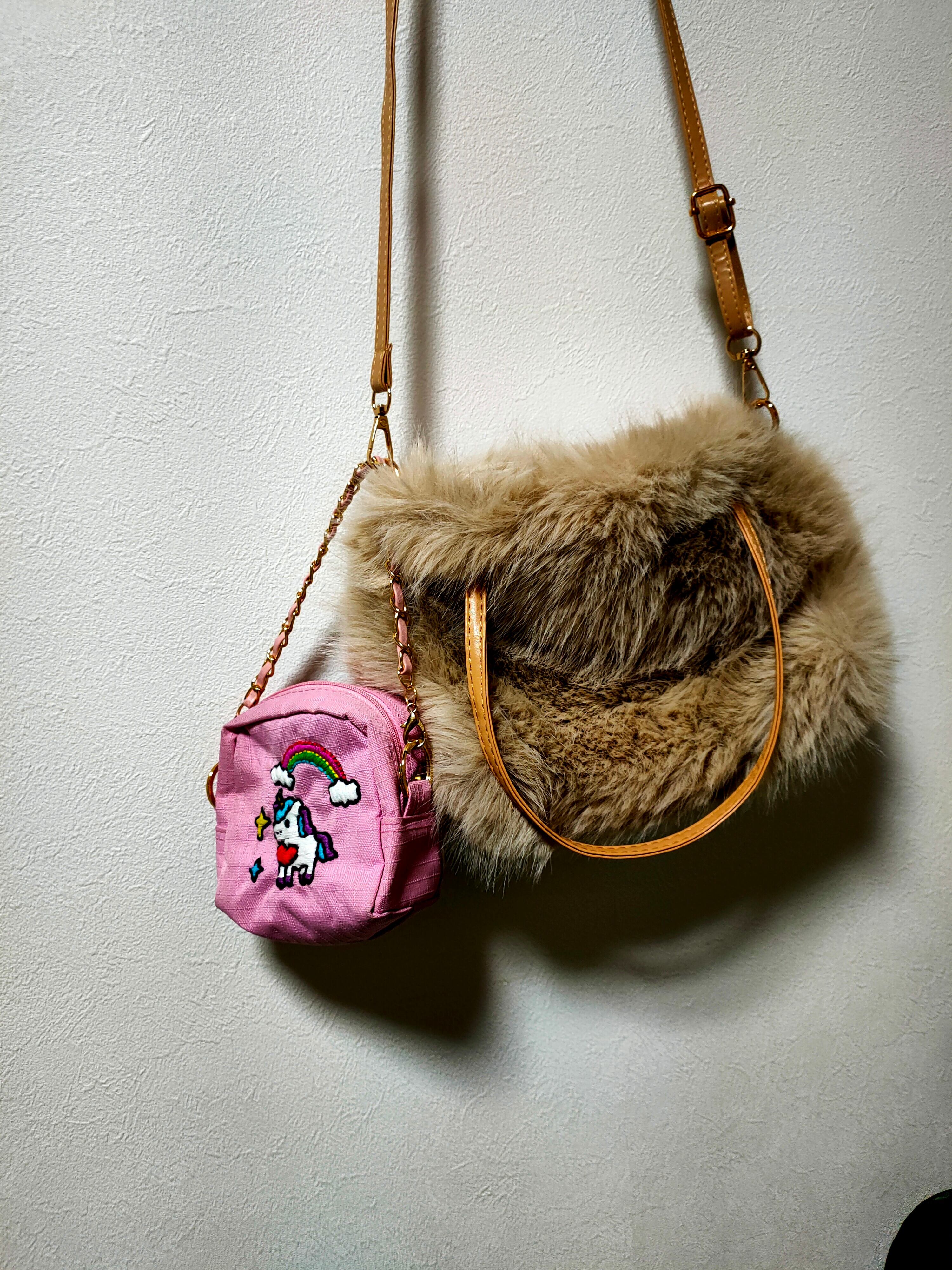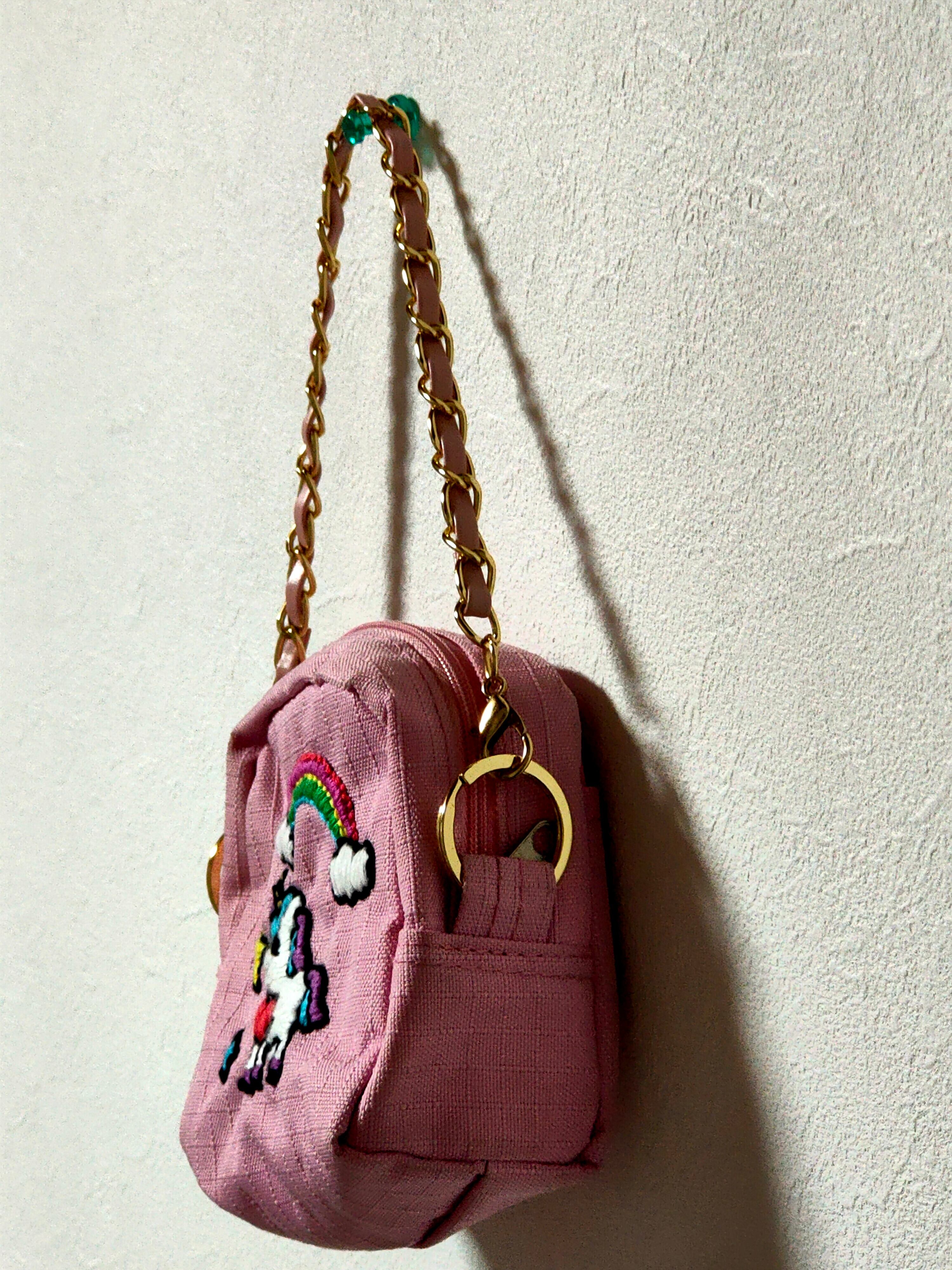 世界にひとつだけの、手刺繍によるユニコーンと虹をあしらったミニポーチです。既製品のポーチをベースに、一針一針丁寧に刺繍を施しました。