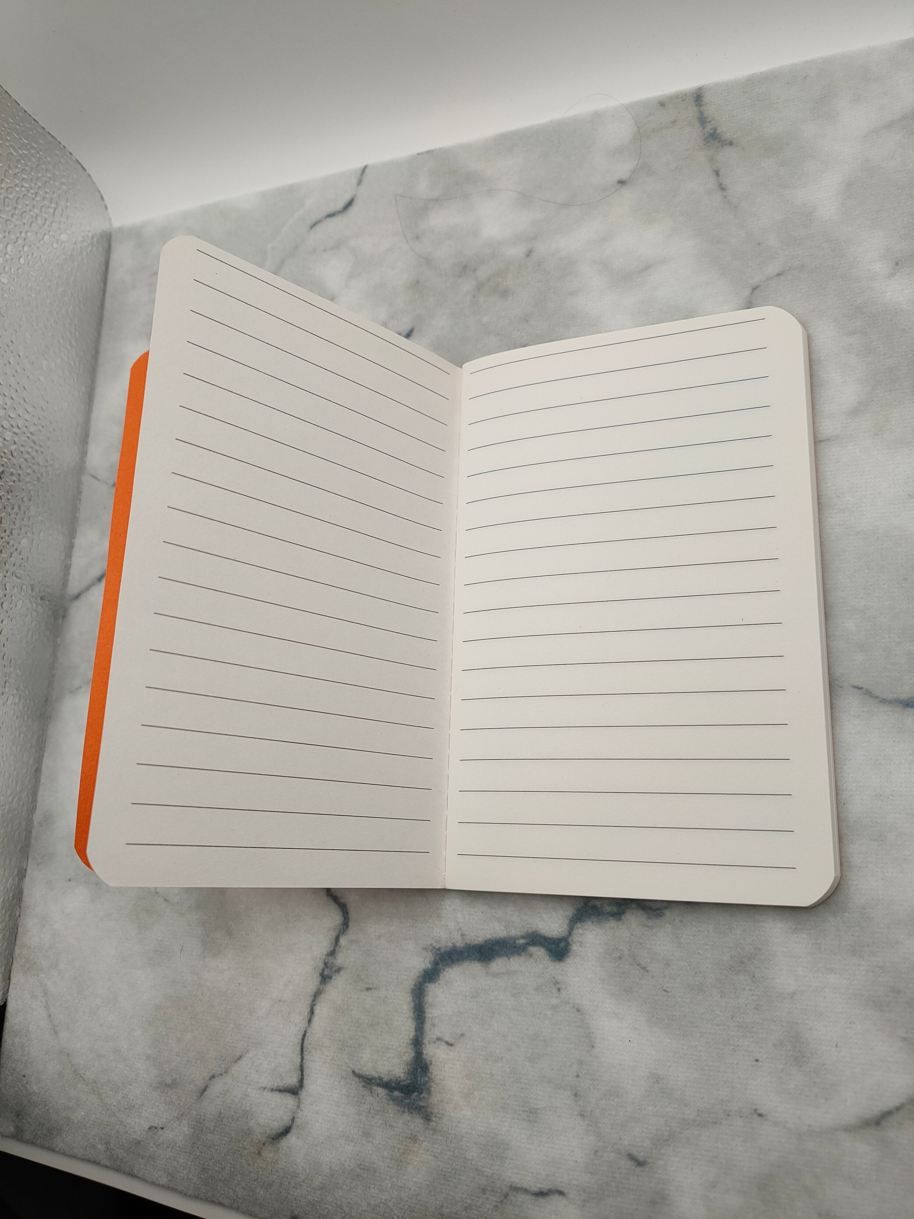 明るいオレンジ色の表紙は、カバンの中でもすぐに見つけることができ、手にするたびに明るい気持ちにさせてくれます。60ページ(横罫線入り)のボリュームがあり、日々のタスク管理や旅の記録、大切な言葉のメモなど、自由な使い方が可能です。