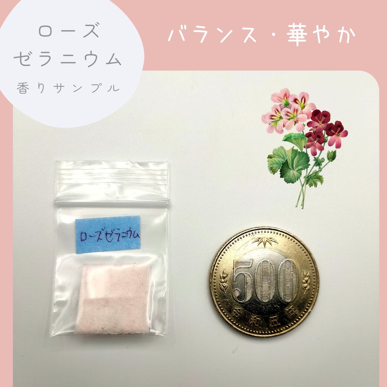 ローズゼラニウム:女性特有のバランスを整え、華やかな気分に浸りたい時に。