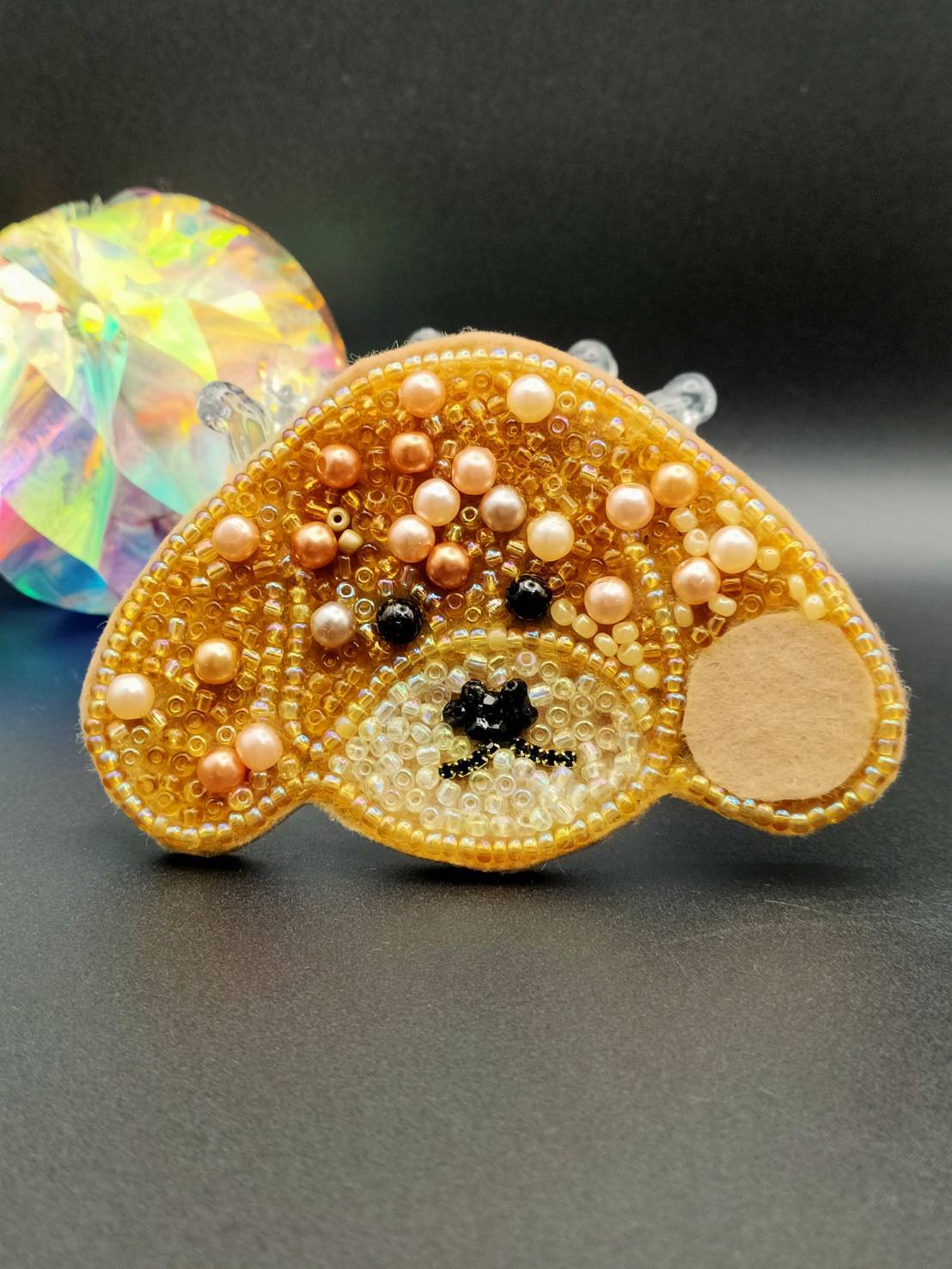一粒ずつ配置されたビーズが光を反射し、お顔周りやバッグをパッと明るく演出します。