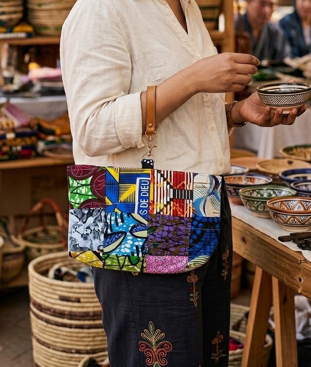 アフリカンパッチワーク・ミニバッグ(キャラメルレザーハンドル)