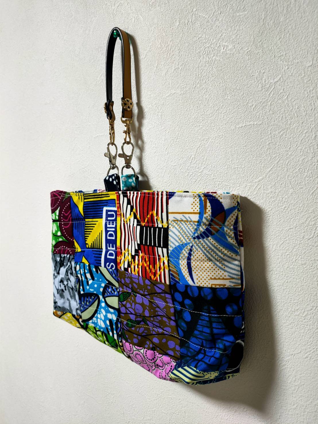 鮮やかなアフリカ布を組み合わせたパッチワークバッグです。
